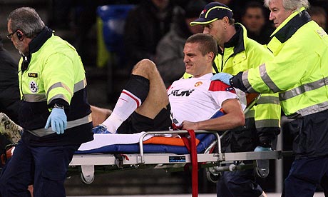 Даниэль Тэйлор сообщает о подтвердившихся опасения по поводу травмы капитана «красных дьяволов»: «Сэр Алекс Фергюсон подтвердил, что Неманья Видич пропустит оставшуюся часть сезона после того, как рентген показал разрыв крестообразной связки колена игрока. Видич получил травму в проигранном матче Лиги Чемпионов в Базеле, итог которого, в итоге, обернулся для команды Фергюсона вылетом в Лигу Европы. Капитан «Юнайтед» пропустит примерно девять месяцев, что грозит стать сокрушительным ударом по шансам клуба догнать «Манчестер Сити» в турнирной таблице Премьер-Лиги».