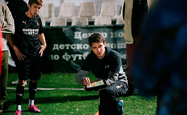 – Да тут нет каких-то гениальных упражнений. Ну, например, играем 4 на 4, задача – перейти на чужую половину поля через пас. Защитник отдает пас на один из флангов и понимает, что если он сейчас не откроется, то у партнера не будет достаточно вариантов, его просто накроют, а центр поля перейти не получится. Потом точно такая же ситуация происходит в игре при выходе из обороны – эти действия откладываются, а в игре уже получается что-то вроде комбинационного футбола.
