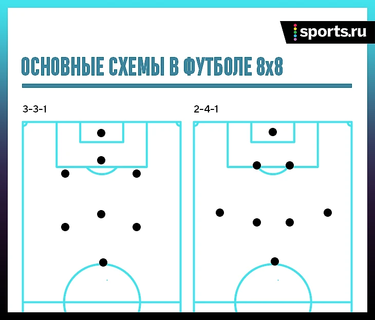 Только надо понимать, что в футболе 8х8 позиции иногда условны: нет офсайдов, не нужно держать линии, часто во время игры схемы ломаются, а игроки опекают друг друга персонально.