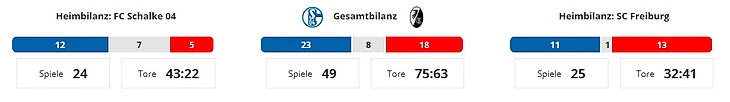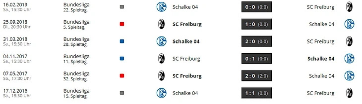 «Фрайбург» отпраздновал свою самую крупную домашнюю победу над «Шальке» 9 декабря 1994 года (3:0), в Гельзенкирхене самая значительная победа случилась 15 декабря 2012 года (3:1).