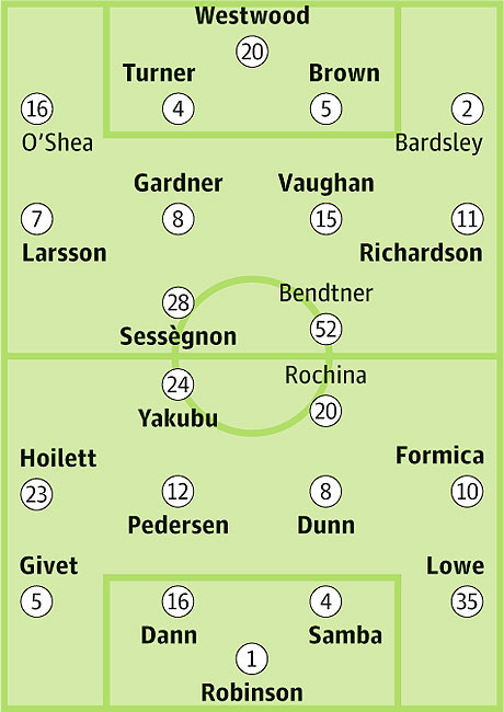 Запасные: Бегович, Нэш, Фуллер, Уилсон, Уилкинсон, Апсон, Диао, Уайтхед, Шоттон, Соарес, Тонга, Джером, Паласиос