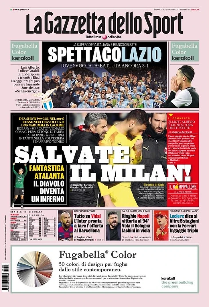 Фантастическая «Аталанта». Дьявол становится адом. Шоу «Богини» (99 голов в 2019), Россонери повержены: 5:0. Доннарумма в слезах. Бобан: «Рынок? Увидим, что нам позволят сделать». Владельцы в бешенстве. Между тем в пороховую бочку приходит Тодибо.