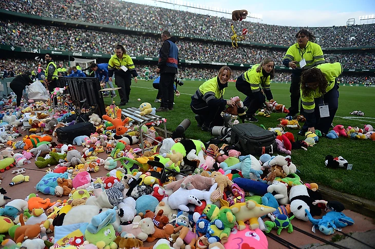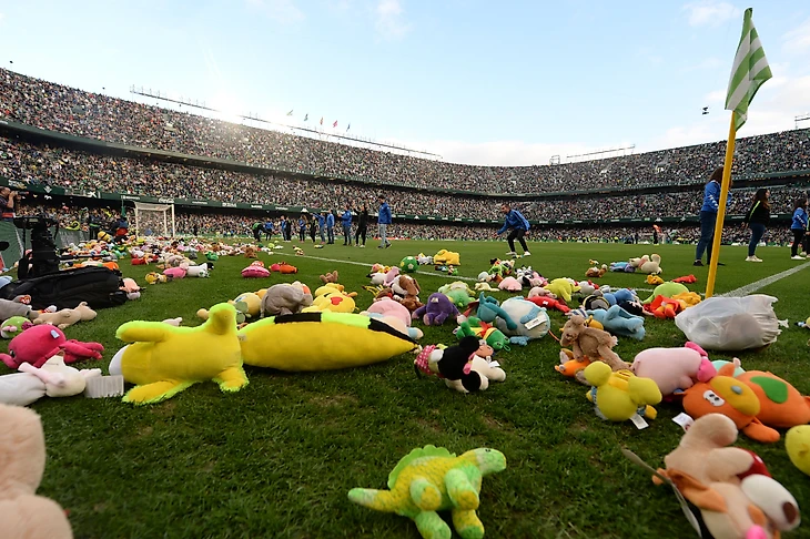 Фанаты «Бетиса» в перерыве домашнего матча с «Атлетико» повторили прошлогоднюю рождественскую акцию: закидали поле мягкими игрушками. Их передадут в местный благотворительный фонд, который помогает нуждающимся детям.