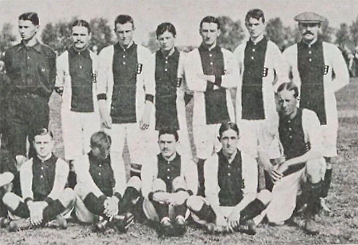 В начале своей истории «Аякс» носил красно-белые полосы с черными шортами, но в 1911 году их заставили сменить форму. Клуб поднялся в высшую лигу чемпионата Голландии, где форму с полосками таких же цветов уже носила роттердамская «Спарта». К слову, роттердамцы используют такую форму и сегодня, еще в 1899 году они переняли ее у «Сандерленда».
