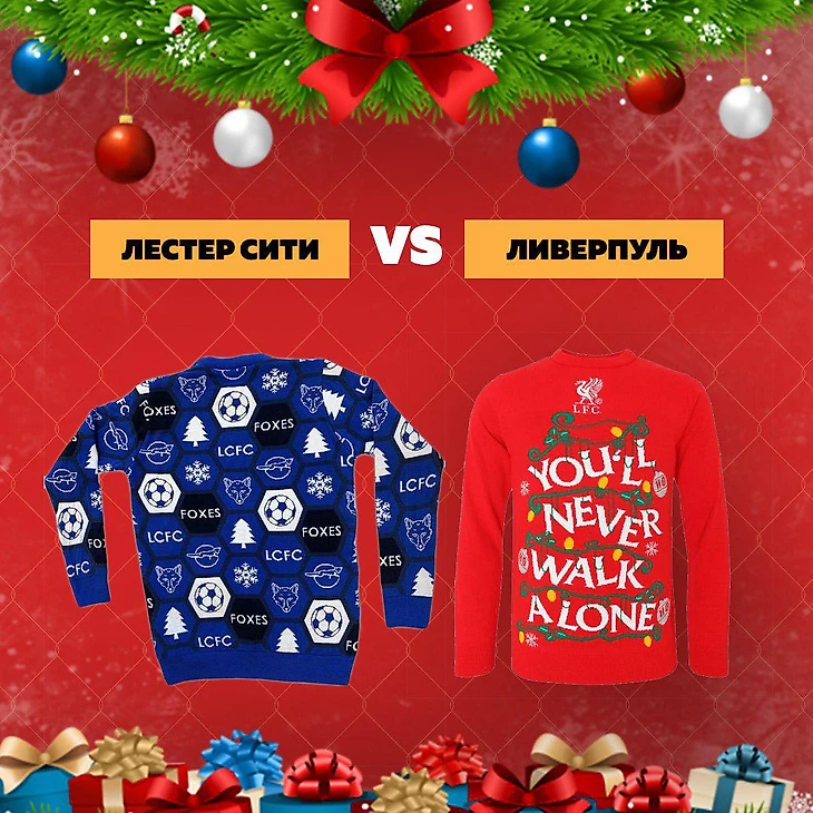 Сразу два больших разочарования. «Лисы» точно могли интереснее обыграть свой же логотип, да и стилизовать Джейми Варди под Санту никогда не поздно. «Ливерпуль», конечно, использовал свой легендарный лозунг, но выглядит это как-то... Впрочем, в соревновании ugly sweeters «красные» точно победят. Главное, чтобы футбол не получился таким же после их поездки на клубный ЧМ.