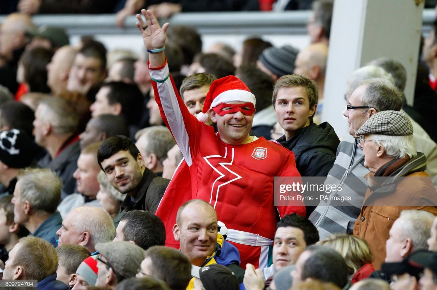 А вот так во время «Boxing Day» выглядят английские болельщики. Особенно выделились парни из Уигана, Лондона, Борнмута и рождественский супермэн из Ливерпуля.