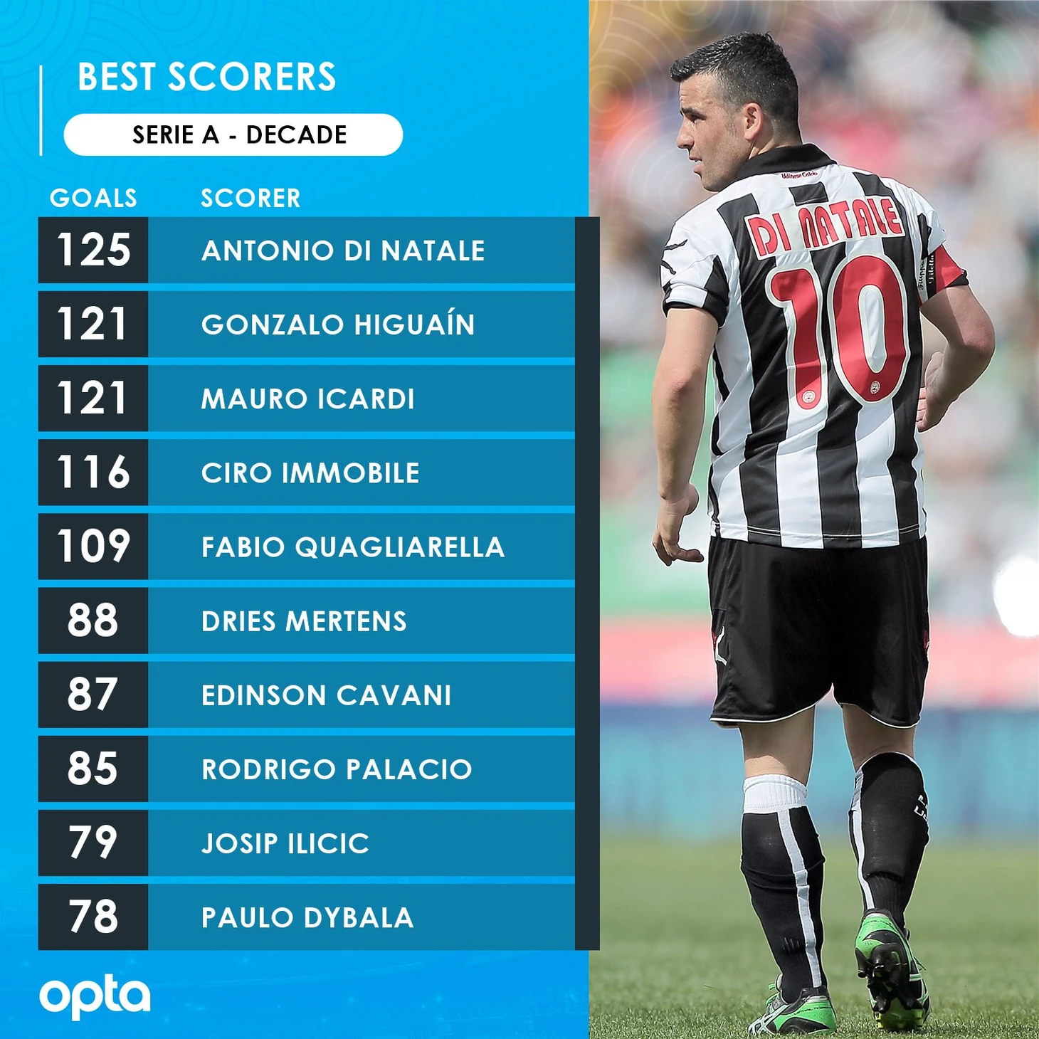 Как не удивительно, но это Антонио Ди Натале, который закончил карьеру аж в 2016 году, но так и остался недосягаем для Гонсало Игуаина и Мауро Икарди.