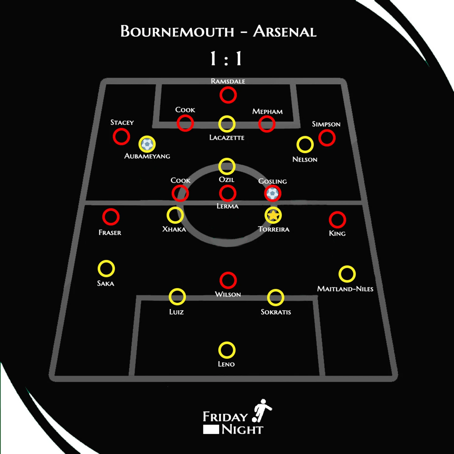 Гранит Джака держал темп игры, а Лукас Торрейра выполнял грязную работу. Он сделал 11 возвратов мяча, на 5 больше чем ближайший оппонент. Также совершил по 2 отбора мяча и перехвата. Скорее всего, тандем этих двух полузащитников является ключевым для Микеля Артеты на данный момент. Их же связывают с возможными переходами в «Герту» и «Наполи» соответственно. Прямо сейчас потеря любого из них выглядит ошибкой.