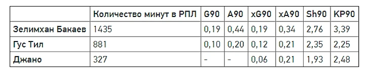 Сравним атакующую статистику Бакаева, Тила и Джано — цифры будут не в пользу грузинского хавбека: