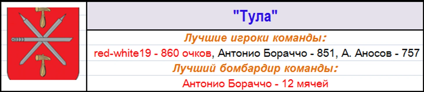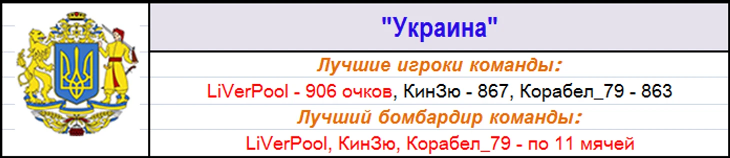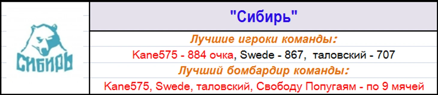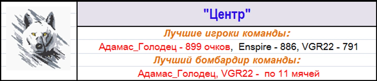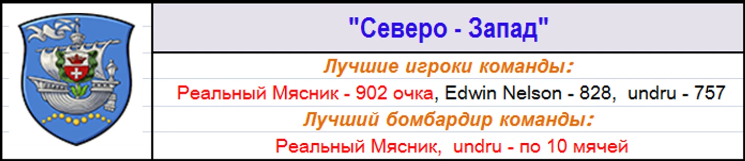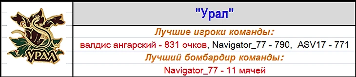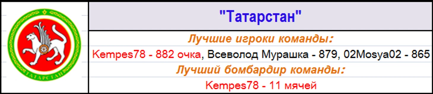 Подробно о каждой команде рассказывать нет сейчас у меня времени и настроения... поэтому только в виде картинок вы можеть увидеть, кто задает тон во всех региональных командах... А глядя на турнирную таблицу выше - вы можете увидеть, что все сборные по очкам идут в плотной группе и место можно весной кардинально поменять... Все в ваших силах)...