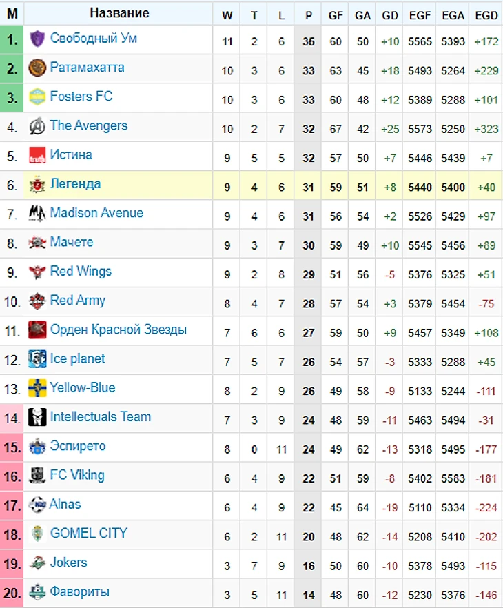 Рейтинг по ФО среди  всех фэнтази-команд: 6 (не затерялись бы и в высшем дивизионе)