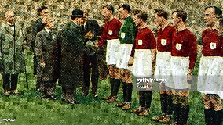 "What is certain is that, on Friday, March 3, 1933, Chapman put in an order with Nottingham-based textile manufacturer Hollins & Co. for ten sleeveless tops in Viyella, a mixture of merino and cotton. These jerseys were to be worn over the club’s white change shirts."