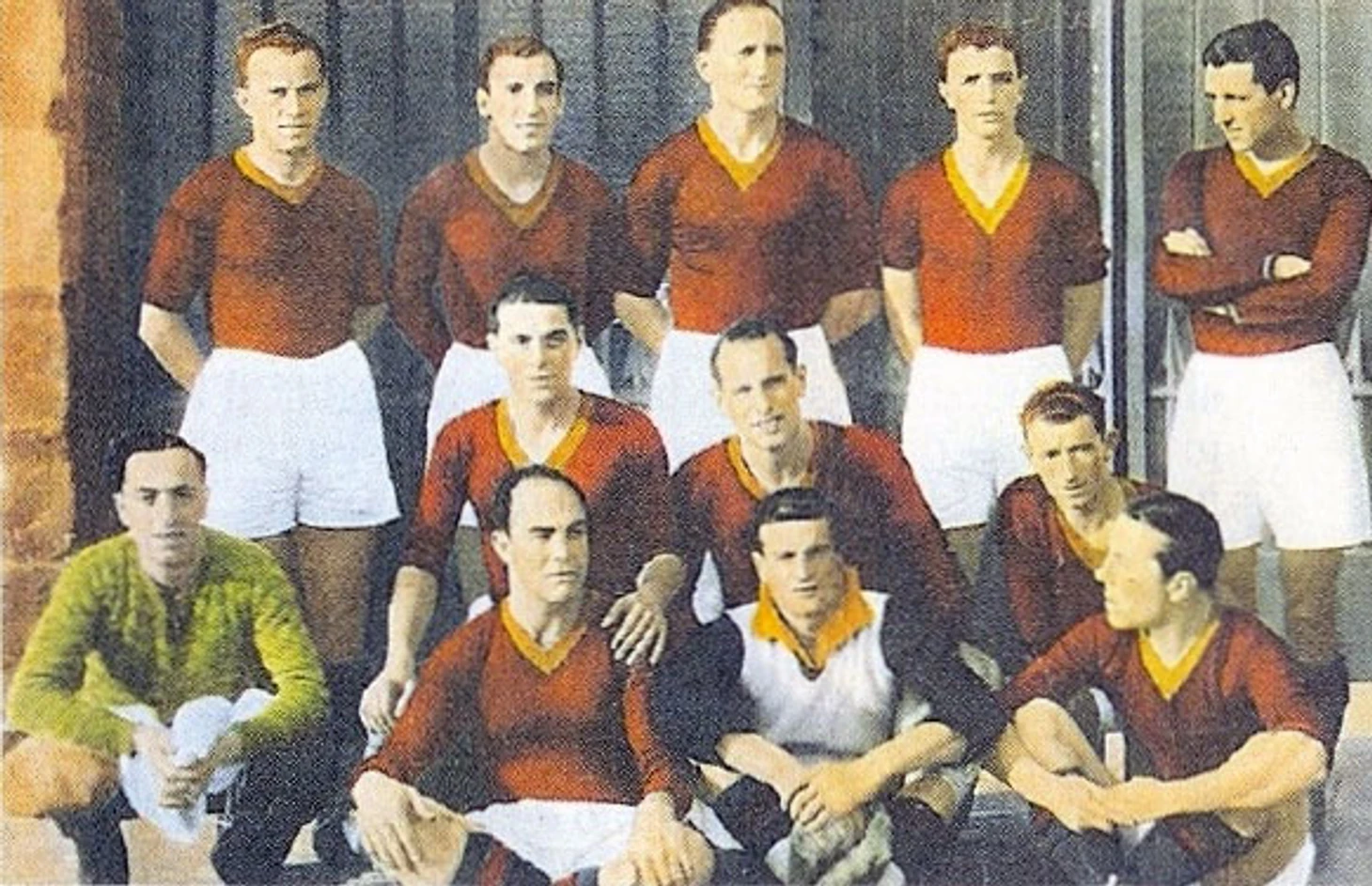 Первым тренером в истории «Ромы», основанной в 1927 году, стал Уильям Гарбатт, в бытность игроком выступавший за «канониров». По-видимому, за основу была взята тогдашняя расцветка лондонцев, к которой добавили желтые воротнички, в соответствии с цветами римского флага.