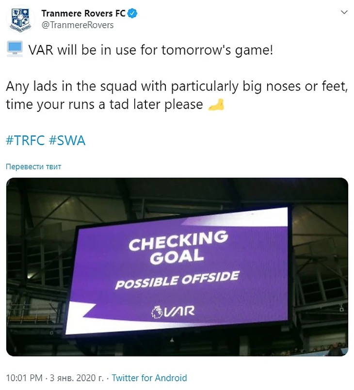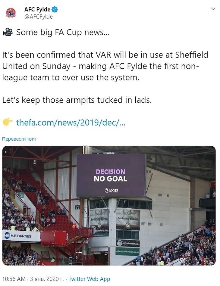 «Важные новости. На игре против «Шеффилд Юнайтед» будет использоваться ВАР.