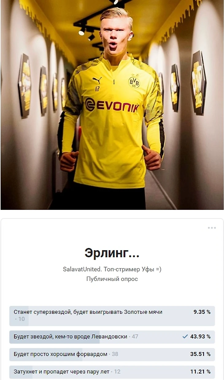 Таковы результаты опроса, относительно будущего игрока в моей группе во Вконтакте. Наибольший процент проголосовавших прочит Холанду будущее Левандовски. Быть может, этот путь он повторит даже в точности. Всё-таки есть примета, если футболист сверкнет в Дортмунде, через какое-то время он оказывается в Мюнхене.
