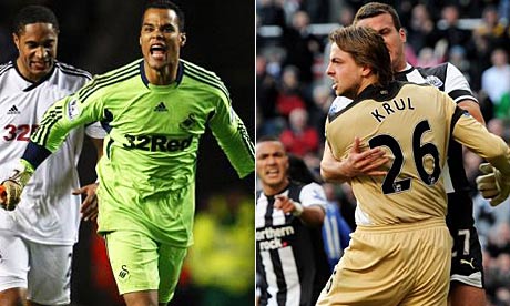 Луиза Тэйлор предвкушает завтрашнюю битву вратарей на «Сент-Джеймсе»: «Можно со всей смелостью предположить, что за субботними событиями на «Сент-Джеймс Парк» будет с интересом наблюдать голкипер «Ромы» Маартен Стекеленбург. По-прежнему рассматривающийся первым выбором на место вратаря сборной Голландии, Стекеленбург, наверняка в курсе, что он попал под серьезное давление за свое место на Евро-2012 из-за Тима Круля и Мишеля Ворма. Возможно два лучших стража ворот этого сезона Премьер-Лиги, сойдутся в субботу на противоположных концах поля, на котором «Ньюкасл» будет стараться снова вернуться на победную поступь, а «Суонси» - добиться восьмого сухаря в нынешней кампании».