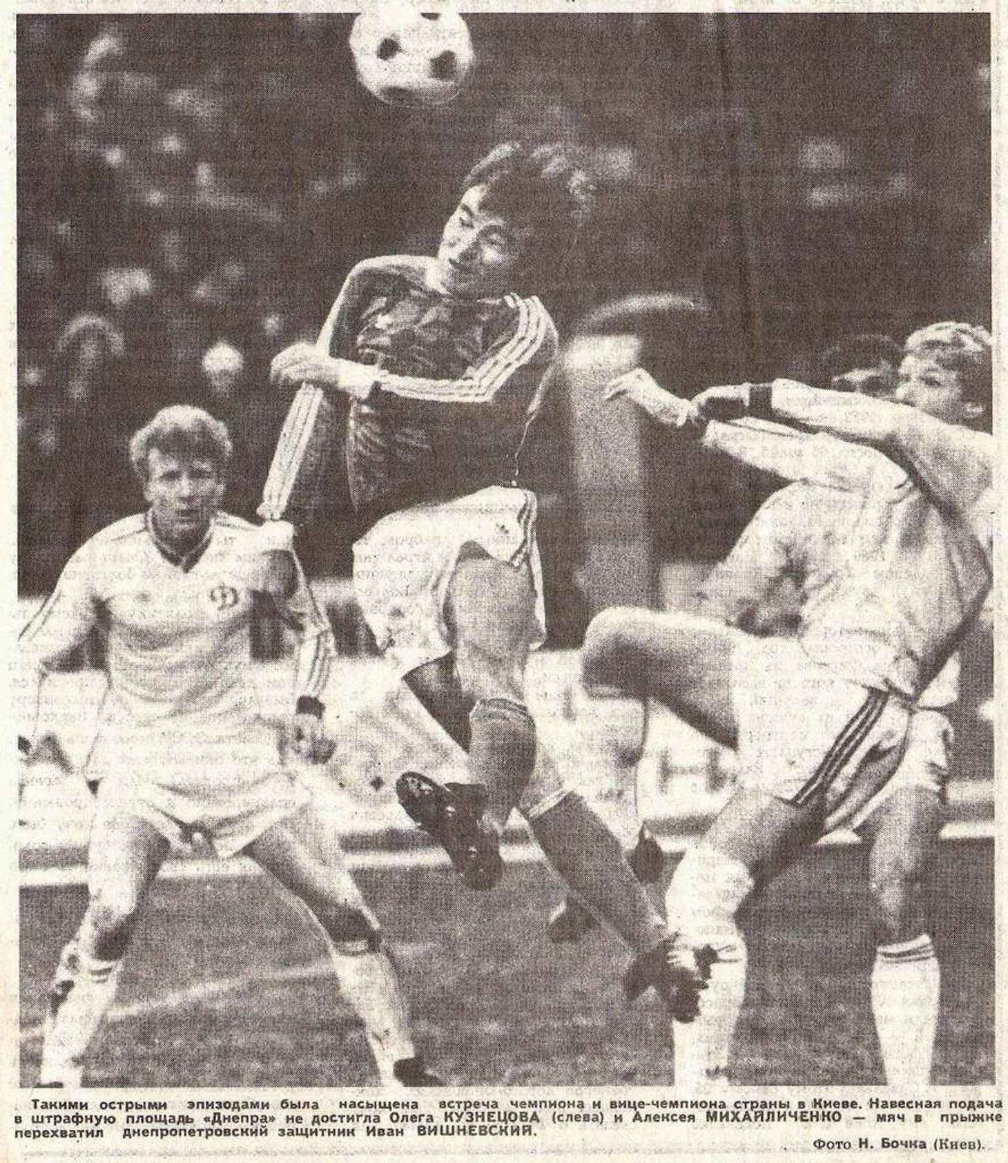 Что интересно, матч в Киеве завершился до девяти часов вечера. Но результат поединка советские болельщики смогли узнать только за пол часа до полуночи, когда завершилась трансляция второго тайма по Второй всесоюзной программе. Ведь если футбол шел по ТВ в записи, то в спортивном блоке программы «Время» его результат не сообщался. Вот и приходилось истинным болельщикам мучаться под «Прожектор перестройки» и первую серию «Графини де Монсоро» вопросом: «Как же там сыграли в Киеве «Днепр» и «Динамо»?». Везунчиками были те, у кого имелись домашние стационарные телефоны в наличие и знакомые в Украине, до которых они могли дозвониться. Тогда счет и кто забил гол, можно было узнать заранее. Но большинству поклонников футбола, киевского «Динамо» прежде всего (коих было по всему Союзу немеренно), сия привилегия была недоступна. Вот и приходилось в понедельник, после тяжелого первого трудового для недели, ждать второго тайма, чтобы насладиться Его Величеством Футболом в исполнении советских гигантов – киевского «Динамо» и «Днепра». Так что в этом плане болельщики Украины, которые имели возможность посмотреть матч в прямом эфире по республиканскому телевидению, были в преимуществе перед всем СССР.
