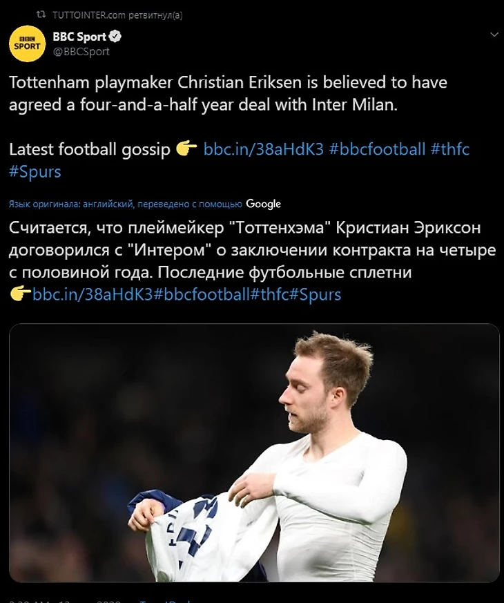 Тоттенхем - Эриксен - Интер