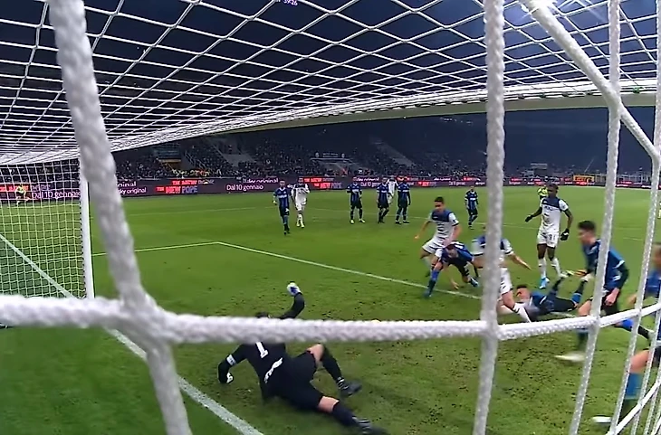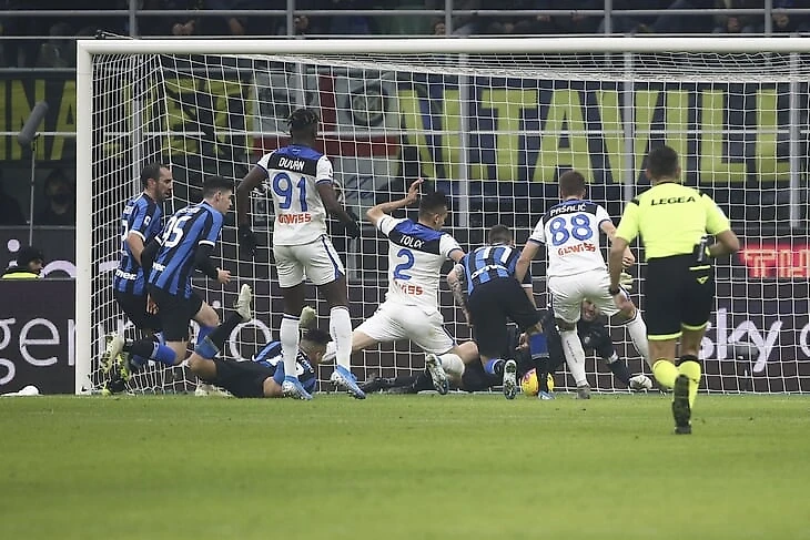 Уже на четвертой минуте «Интер» забил – Лаутаро Мартинес вышел один на один и прошил вратаря. А вот дальше «Аталанта» мощно прижала соперника к воротам. Кульминационный момент случился на 40-й минуте. Гости подали штрафной, защитник Рафаэл Толои пробил головой, а добить нормально не получилось – защитник «Аталанты» упал перед мячом и вместо удара только ткнул коленом.