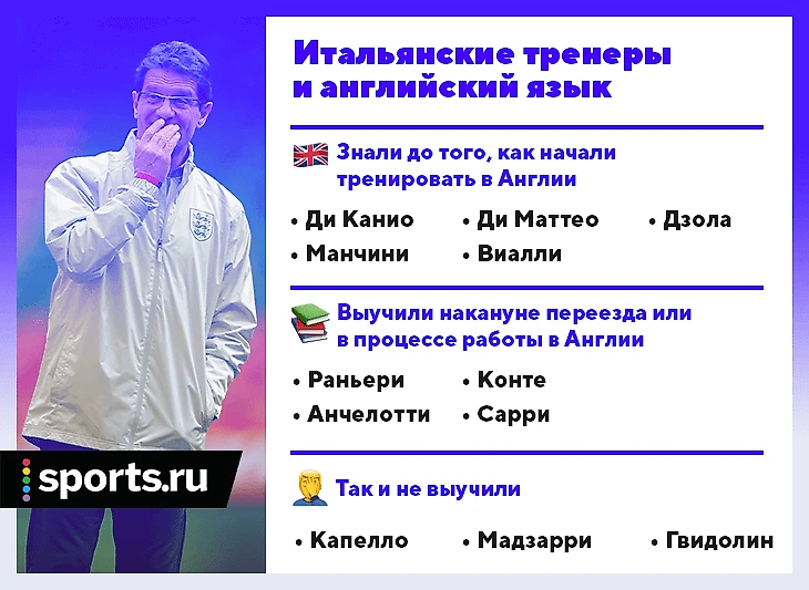 Существует и печальный сценарий: иногда тренер-итальянец не осваивает английский – и это обязательно влияет на его карьеру. Самый яркий пример последних лет – Вальтер Мадзарри. В 2016-м экс-тренер «Интера» и «Наполи» неожиданно возглавил «Уотфорд», но за год потопил команду на 17-е место и был уволен. Не факт, что «Уотфорд» провалился именно из-за языковых проблем, но они явно осложняли команде жизнь: на тренировках италоязычные игроки передавали остальной команде указания тренера, а во время матчей Мадзарри помогал ассистент-переводчик.
