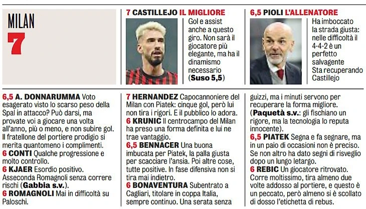 Оценки игрокам «Милана» за кубковый матч со «СПАЛ» от Gazzetta dello Sport + ПЕРЕВОД