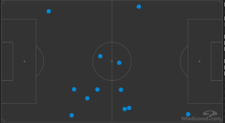 Адама, как написано у него на футболке (наверно, потому что этих Траоре просто пруд пруди, а Адамов не так уж и много, я угадал?) постоянно менялся с флангами с Нето. Это или, так сказать, домашняя заготовка или просто импровизация прямо на поле - не суть важно. Вот посмотрите на его тепловую карту.
