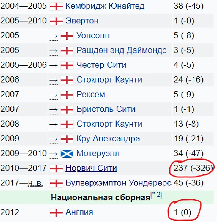 Но больше всего меня впечатлил список его предыдущих клубов. Зацените-ка! Один матч за сборную Англии даже отыграл, вернее один тайм против Италии в товарищеском матче в 2012 году. Победили 2-1.