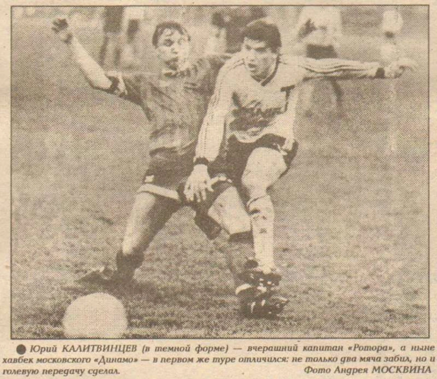 Да и вообще Севидов не боялся доверять молодежи, как вот Юрию Калитвинцеву на третьем фото, где промокший до нитки молодой талант сражается под дождем с торпедовцем. Через 2 дня, 5 мая 1989 года, Юре исполнится 21 год. А еще спустя пять лет он переедет в Украину и станет самым настоящим лидером киевского «Динамо» и национальной сборной своей новой Родины.