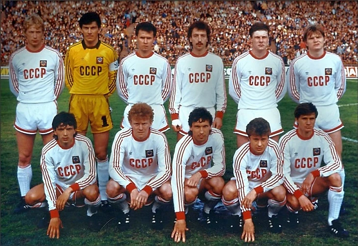 Валерий Лобановский доверил защищать честь страны вот этим футболистам на втором фото: стоят - Алексей Михайличенко («Динамо» Киев), Ринат Дасаев («Севилья» Испания), Геннадий Литовченко («Динамо» Киев), Сергей Алейников («Динамо» Минск), Олег Лужный («Динамо» Киев), Сергей Горлукович («Локомотив» Москва); присели – Игорь Добровольский («Динамо» Москва), Олег Кузнецов («Динамо» Киев), Олег Протасов («Динамо» Киев), Александр Заваров («Ювентус» Италия), Василий Рац («Динамо» Киев).