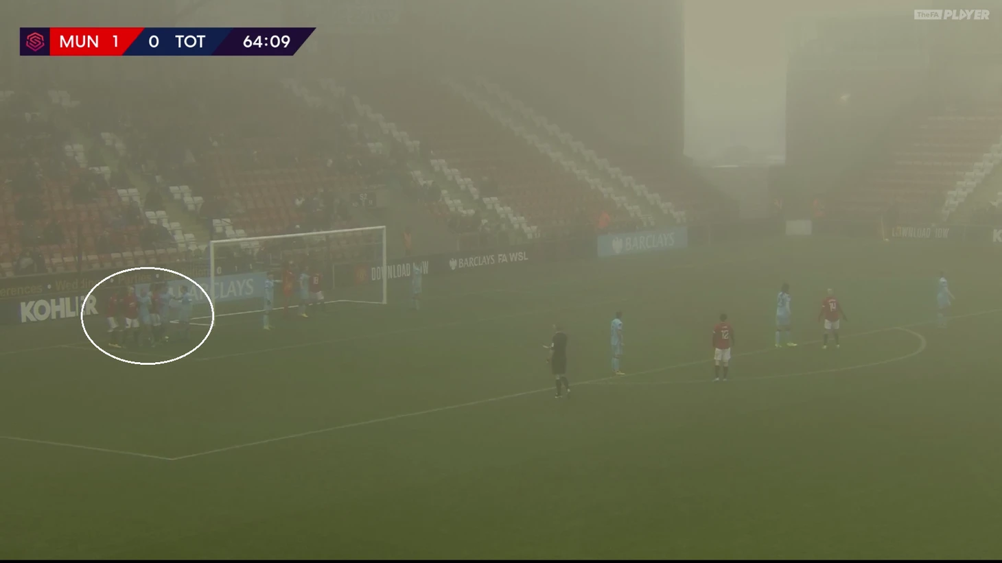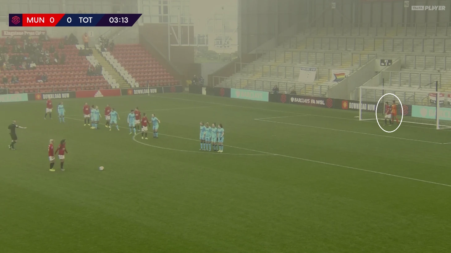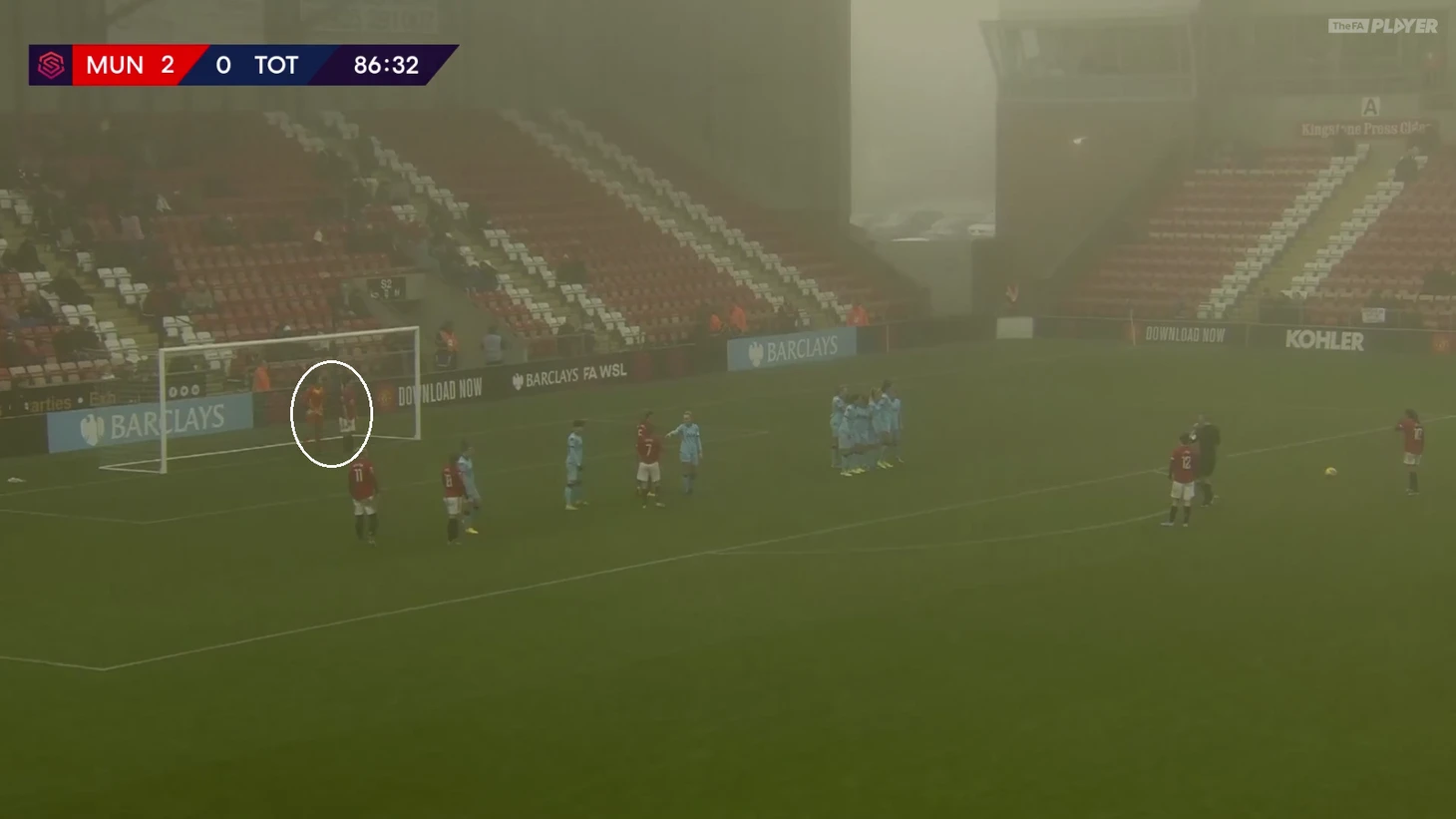 Вот ещё пример штрафного, при котором к голкиперу "Тоттенхэма" приставлен игрок МЮ (снова Сигсуорт):