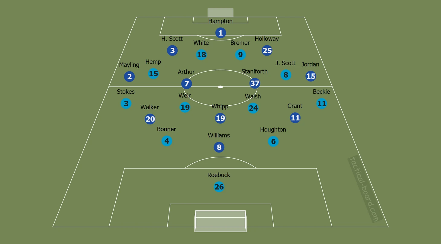 В сравнении с матчем прошлого тура у "горожан" одно изменение: Эллен Уайт вместо Джорджии Стануэй, простая ротация. Паулин Бремер теперь становится постоянным игроком старта. Не удивительно, учитывая её голевые свершения (четыре мяча в двух последних играх). По ходу сезона она в основном появлялась со скамейки, а сейчас уже лучший бомбардир команды.