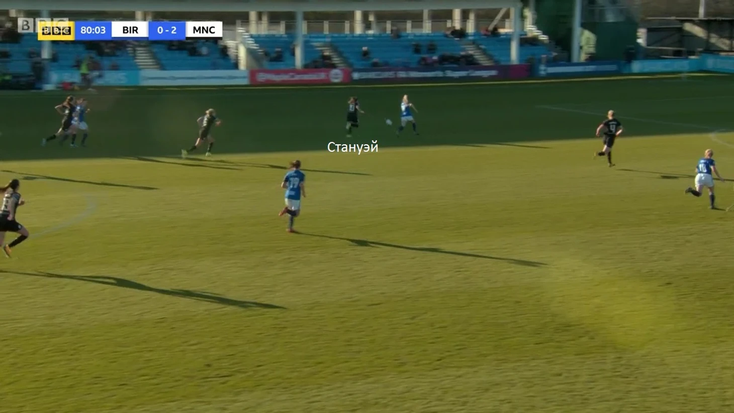 Дальше последует неразбериха, при которой Стануэй и центральная защитница Стэф Хотон столкнутся, а для Люси Станифорт откроется огромное пространство:
