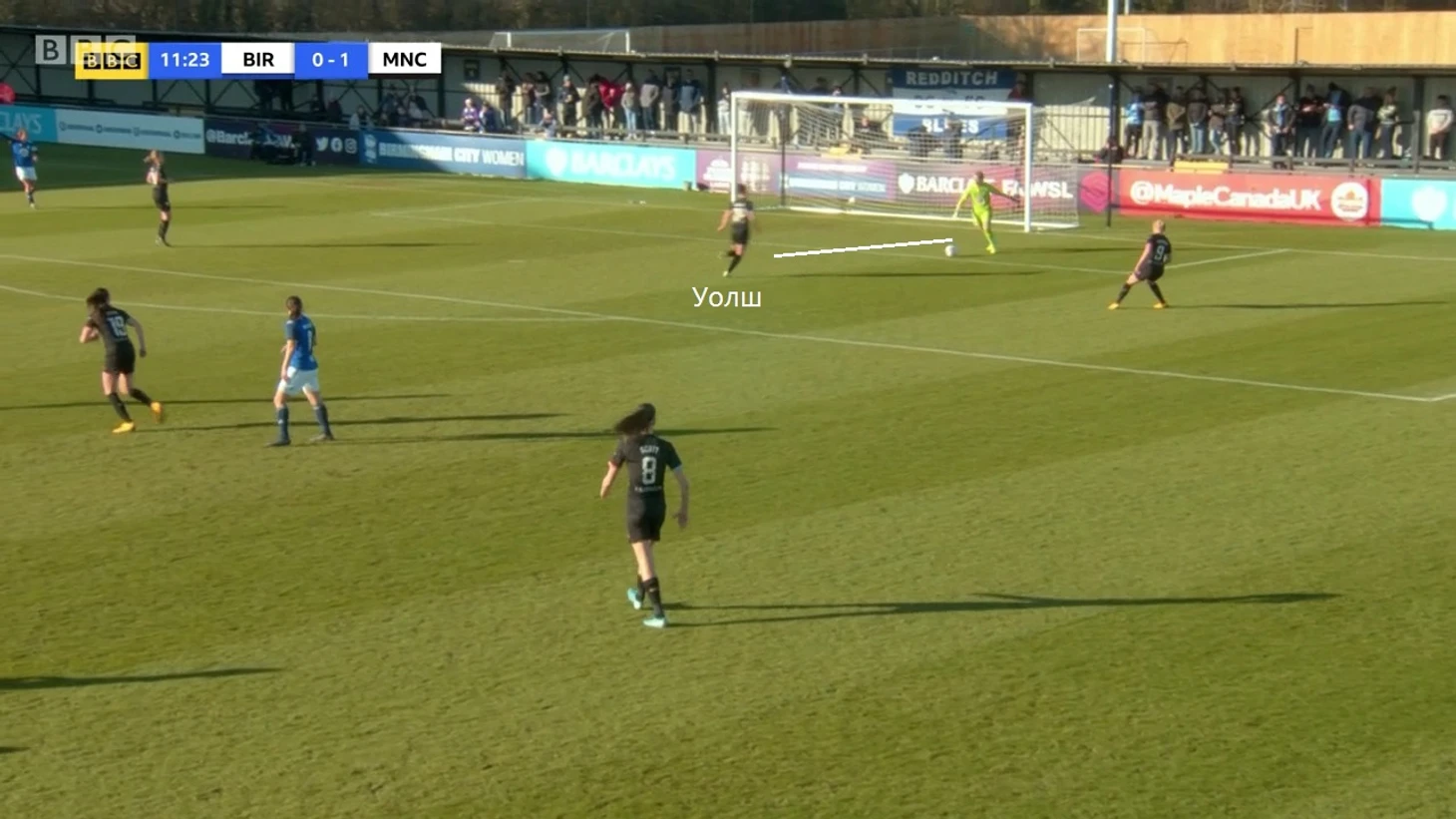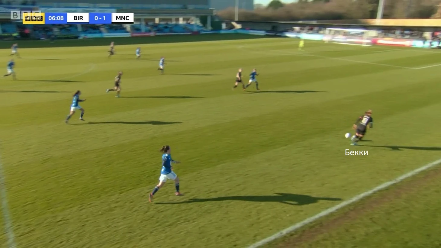 Формально ничего страшного, потому что в подобных ситуациях "Сити" просто отбирает мяч при попытке его продвижения дальше, но в этот раз Люси Станифорт решила не разыгрывать, а просто пробила по воротам. Элли Робак выручила.