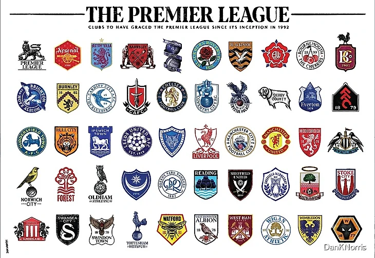Графический дизайнер Даниэль Норрис переосмыслил эмблемы всех клубов, которые участвовали в Премьер-лиге с момента основания в 1992 году.