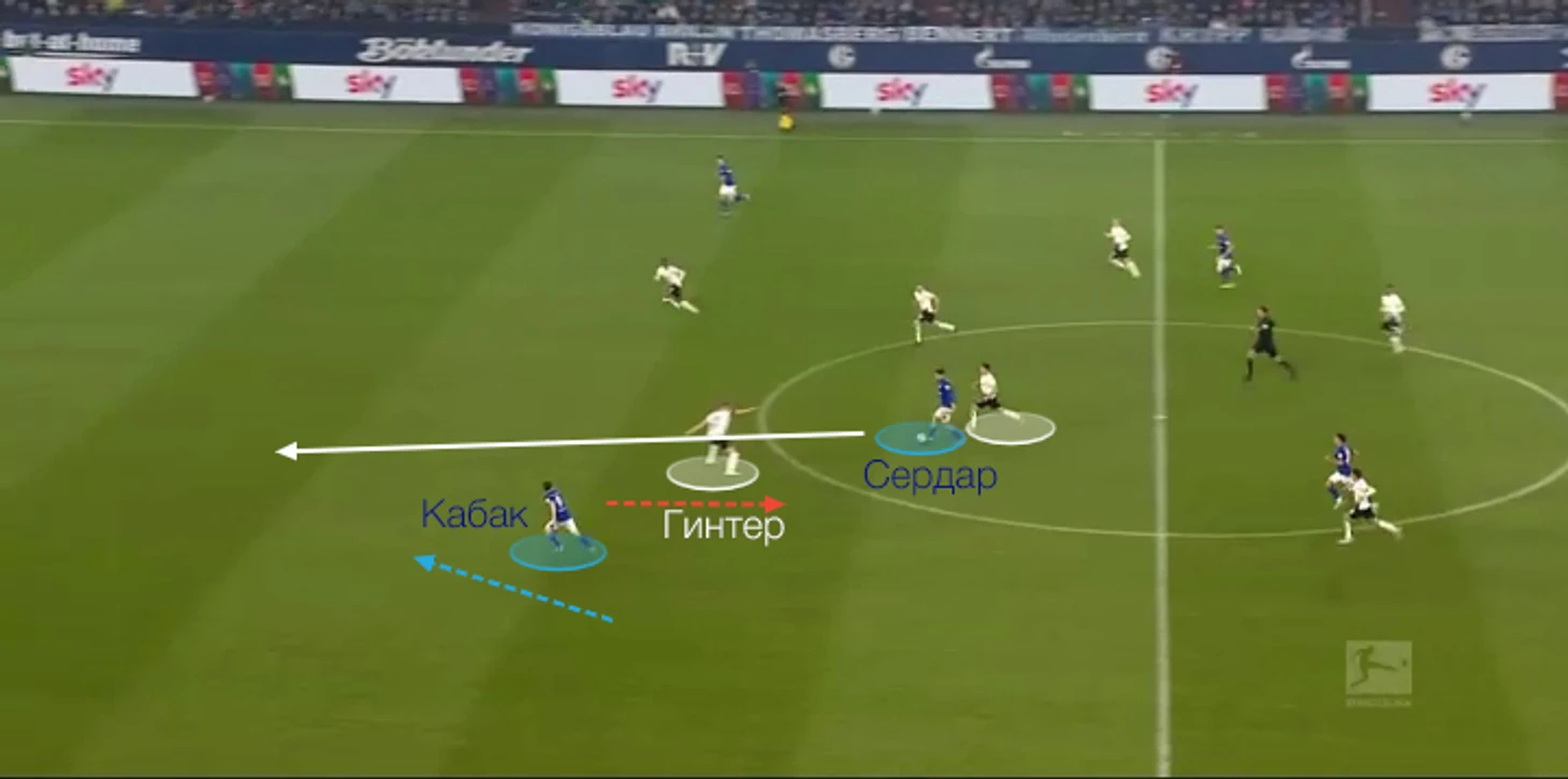 Защитник «Боруссии» изначально не выбросился на Сердара в момент приёма мяча в центральном круге, решив держать позицию. Однако уже через секунду изменил решение и полностью потерял контроль над ситуацией. Сердар ловко поймал Гинтера на опорной ноге и отдал разрезающий пас.