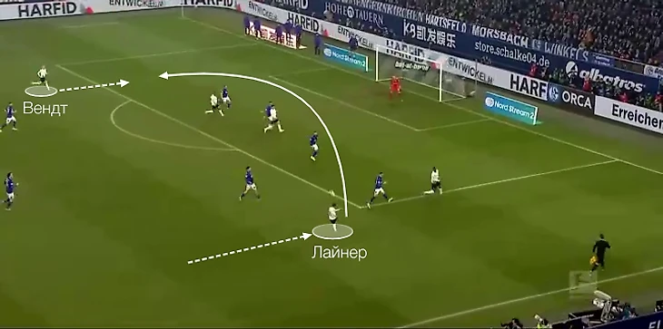 После 30-й минуты при подобных забросах в эту зону дополнительно стал смещаться Хофманн, помогая Вендту в борьбе с Калиджури.