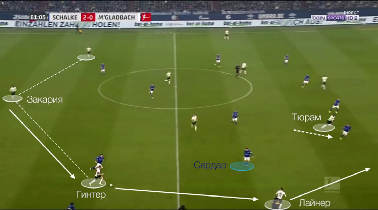 Ещё одно изменение - перевод Тюрама на правый фланг в пару к Лайнеру. Привычный вертикальный футбол Марко Розе начал возвращаться.