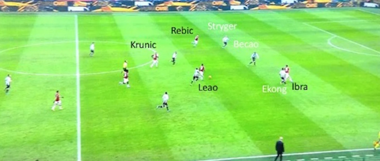 На фото ниже против шведа играют Бекао и Эконг, а Леау остается без внимания. Именно на португальца Ибра скинет мяч головой.