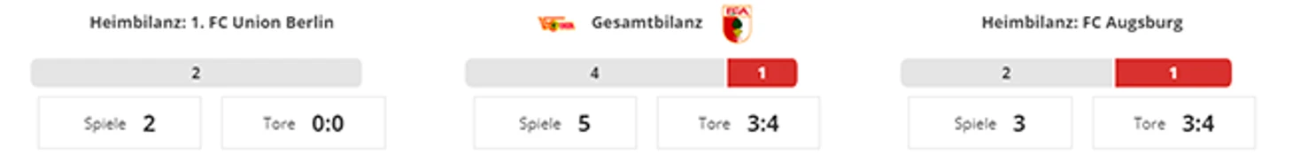 «Унион» ещё не сыграл ни одной ничьи дома в первой Бундеслиге. Но оба матча во второй Бундеслиге, когда «Аугсбург» гостил в Берлине, закончились со счётом 0:0.