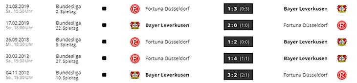 «Байер» выиграл каждый из последних пяти матчей в Бундеслиге против «Фортуны», забивая в каждой встрече минимум два гола. На данный момент это самая долгая победная серия леверкузенцев против клубов первой лиги.