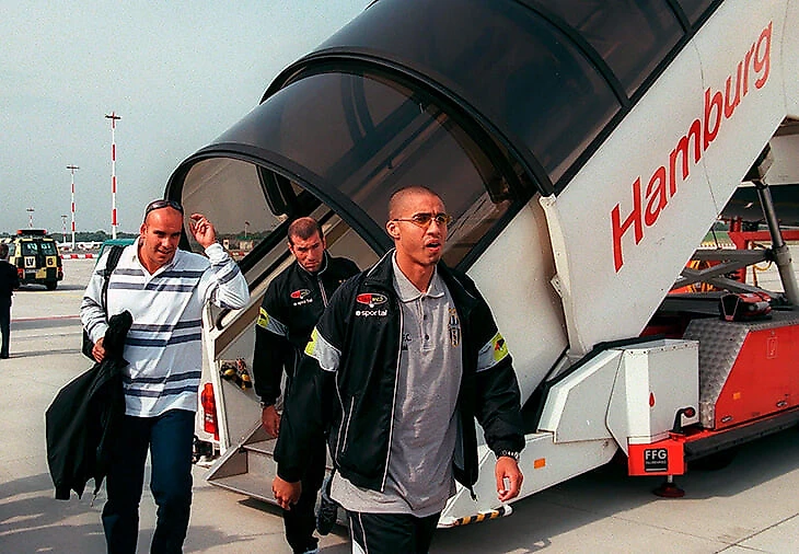 А это бразильский нападающий Аилтон вместе с курткой (она живая?) только что прибыли в Гамбург.