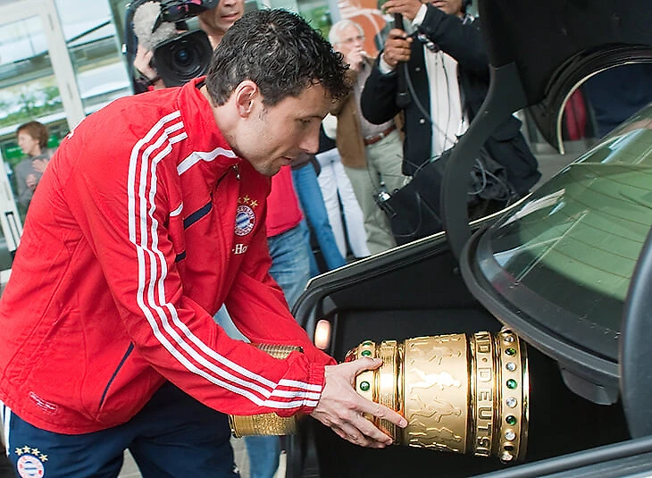 Ван Боммел кладет очередной кубок «Баварии» в багажник.