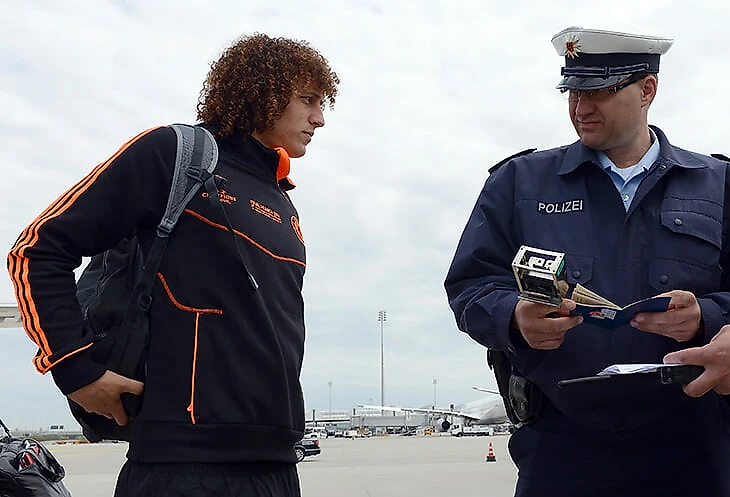 У Давида Луиза тщательная проверка паспорта в Германии прямо перед самолетом. Может быть, на фото в нем нет знаменитой прически?
