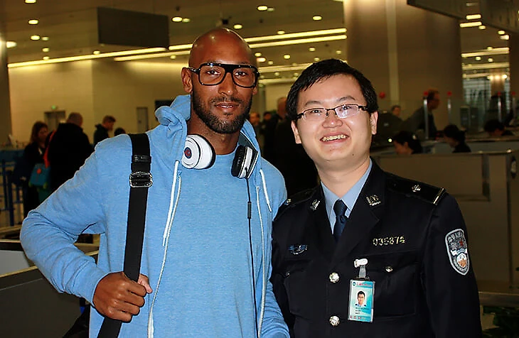 Анелька в Китае на паспортном контроле. Он перешел в «Шанхай Шеньхуа».