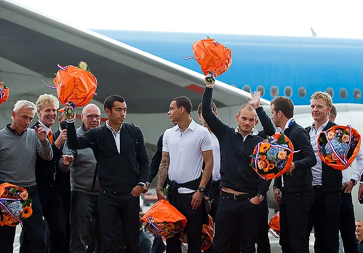 Уважение и благодарность. Голландцы вернулись после поражения от испанцев в финале ЧМ-2010.
