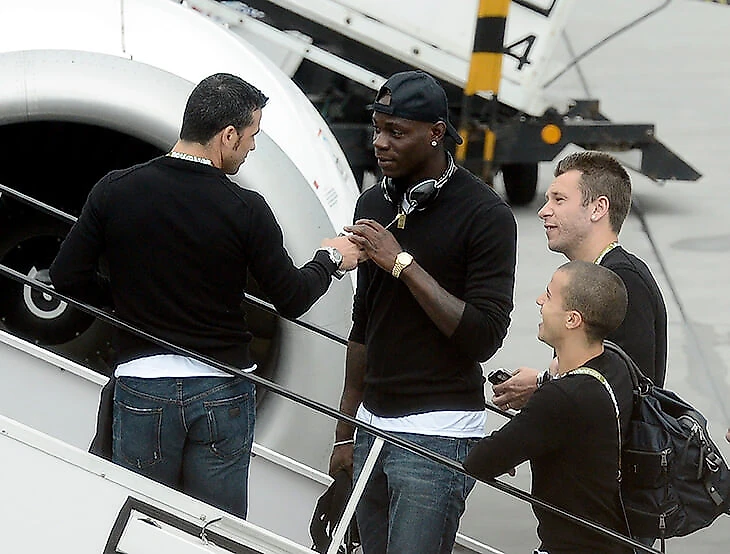 Итальянцы уже на трапе и шутят над Марио Балотелли перед вылетом в Познань.