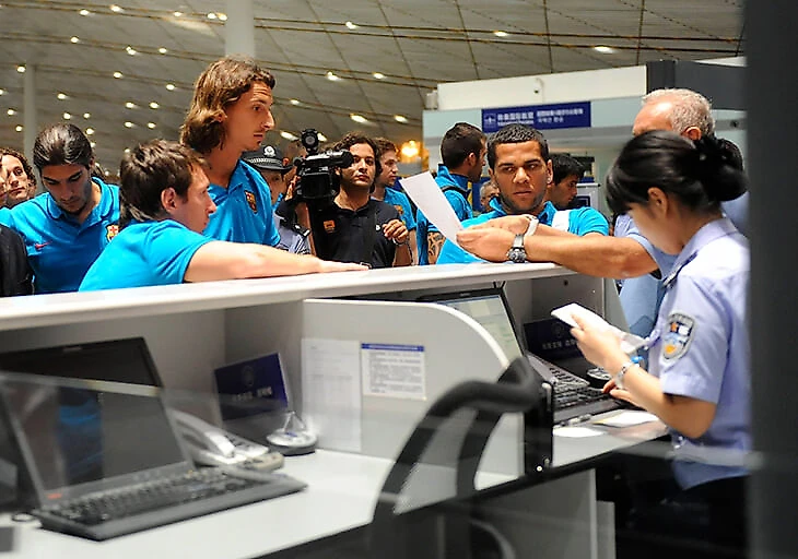 Кажется, у лидеров «Барселоны» заминка с документами на стойке регистрации при въезде в Китай.