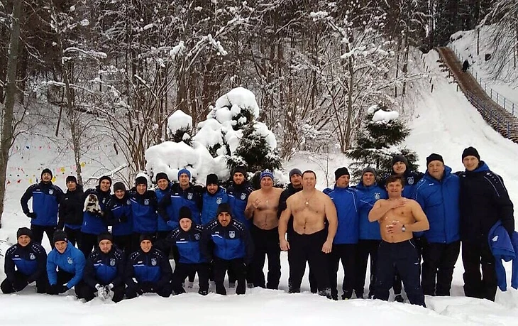 Вот как объяснил снежные забеги по лестнице Александр Побегалов, бессменный коуч «Шинника» с тату эмблемы на руке: «Наш первый сбор, прошедший по традиции в Ярославле, был посвящен по большей части аэробно-силовой подготовке. Установившаяся в этом году необычно теплая погода несколько сказалась на программе утренних занятий, которые всегда у нас проводились на учебно-тренировочной базе «Белкино» с использованием различных трасс комплекса «Забава».