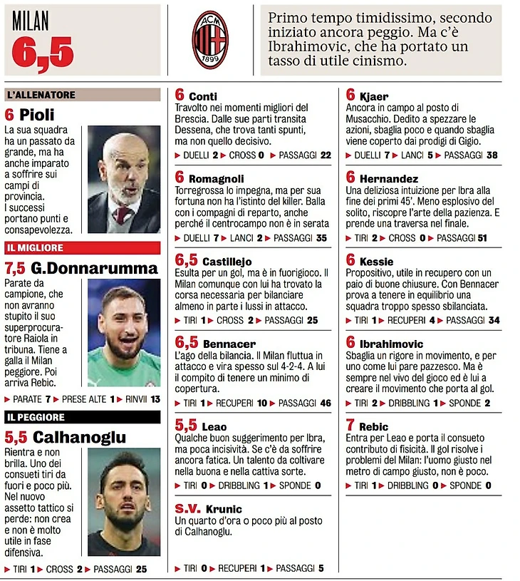 Оценки игрокам «Милана» за матч с «Брешией» от La Gazzetta dello Sport + ПЕРЕВОД