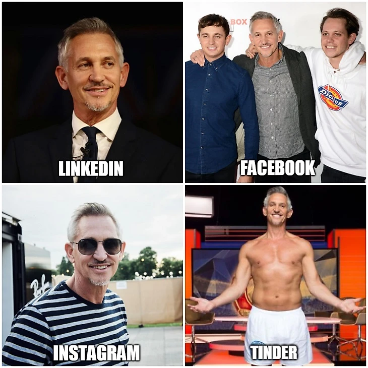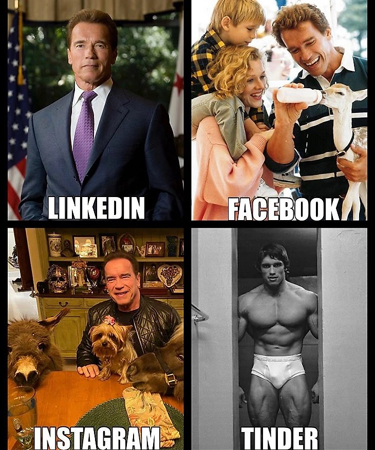 Его запустила Долли Партон – 74-летняя американская кантри-певица и актриса, крестная Майли Сайрус. Несколько дней назад Долли выложила коллаж: LinkedIn – строгий бизнес-образ, Facebook – фото для друзей, Instagram – профессиональный снимок, который хочется лайкнуть, и Tinder – фото, которое упростит знакомство в интернете.